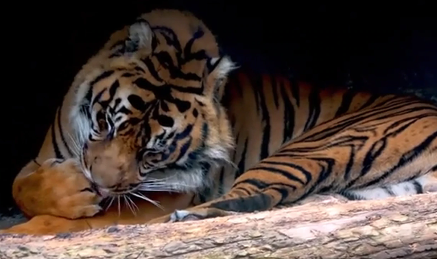 Tal como se puede ver en los primeros segundos del video viral, que ha sido difundido en el canal Rumble Viral de YouTube, el majestuoso tigre de Sumata puso ser captado disfrutando de un descanso bajo el sol.